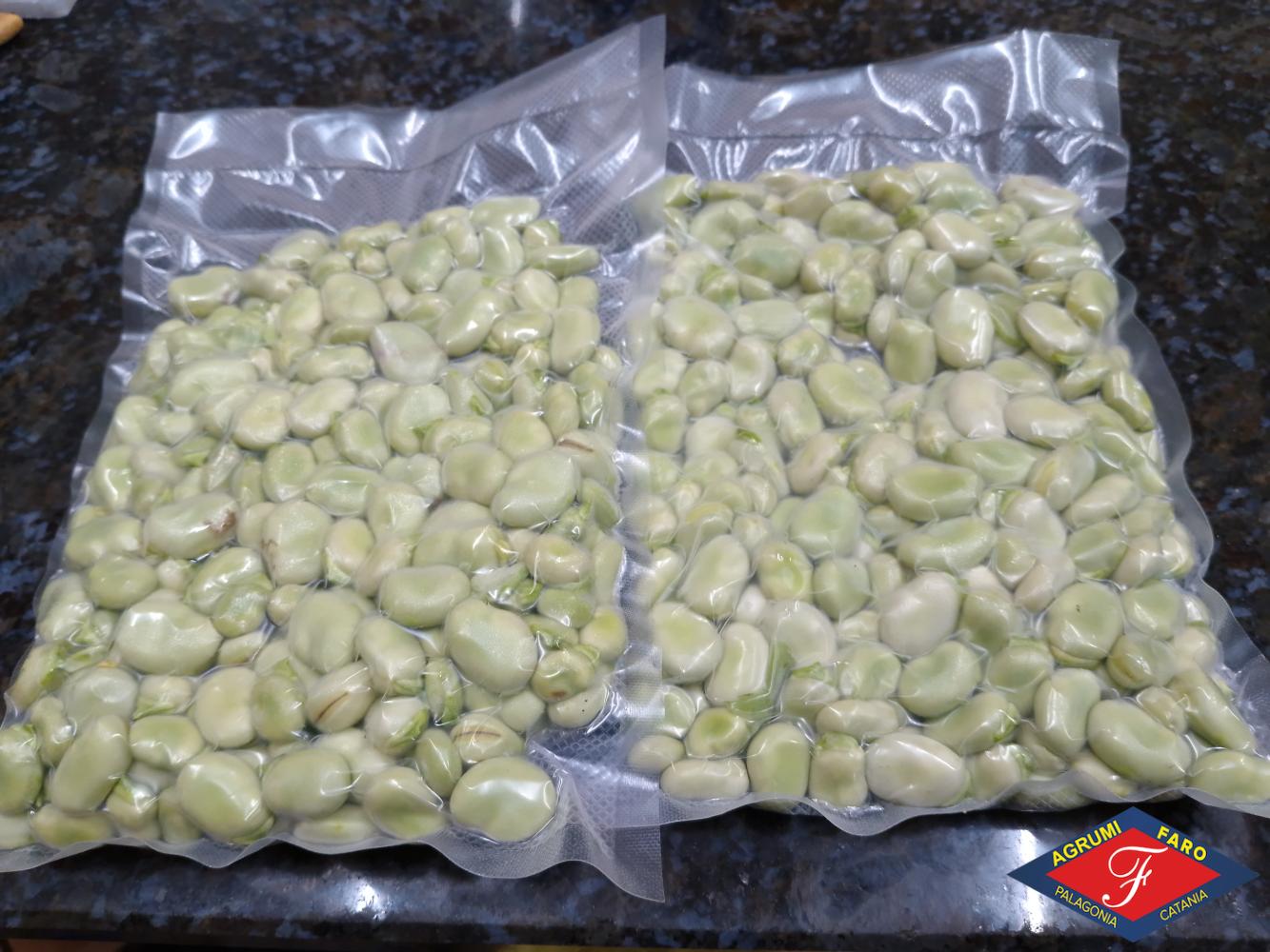 Fave fresche  siciliane  raccolte e  decorticate già pronte da preparare note per la loro dolcezza e la consistenza tenera. Il fatto che siano già sbucciate e pronte da preparare le rende molto comode da cucinare.