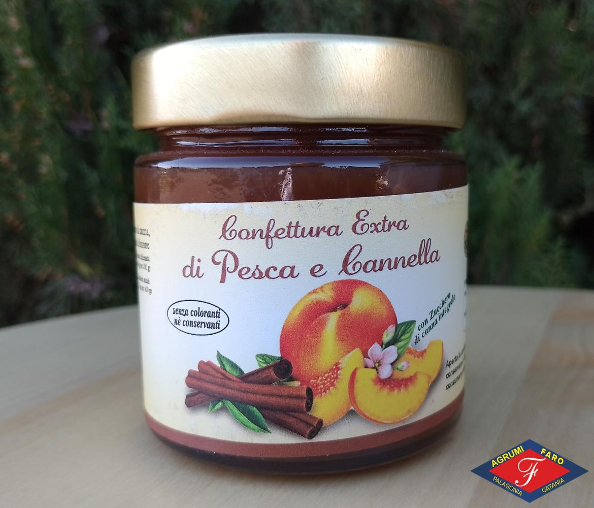 La confettura extra di pesche settembrine e cannella è un prodotto particolare che unisce le deliziose pesche settembrine siciliane ,note per la loro dolcezza, al profumo avvolgente della cannella, creando una combinazione perfetta di sapori freschi e speziati. I frutti sono coltivati secondo metodo naturale e donano alla confettura l’aroma e il gusto delle pesche appena raccolte.
